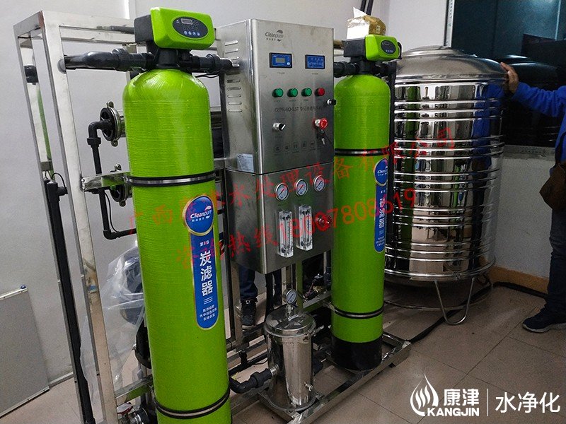 工藝流程:原水箱-原水泵-石英砂過濾器-活性炭過濾器-精密過濾器-臭氧殺菌-高壓泵-反滲透膜組-無菌水箱-變頻回水系統