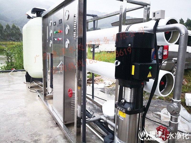 項目名稱:上林養殖場每小時4噸反滲透直飲水設備 設備名稱:4噸反滲透純凈水設備 工藝流程:山泉水-原水箱-原水泵-石英砂過濾器-活性炭過濾器-阻垢劑加藥裝置-保安過濾器-高壓泵-反滲透裝置-用水點...