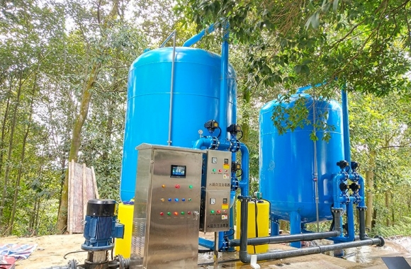 項目名稱:大王灘湖水凈化工程 設備名稱:50噸壓力式一體化凈水設備 工藝流程:湖水-水箱曝氣消毒-絮凝加藥-石英砂過濾器-活性炭過濾器-精密過濾器-二氧化氯加藥器-凈水池-各用水點...