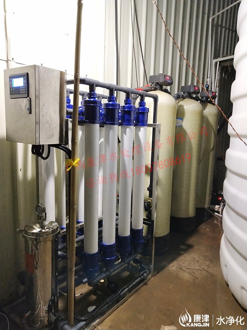 工藝流程:井水-原水箱-石英砂過濾器-活性炭過濾器-超濾-軟化水-凈水箱
