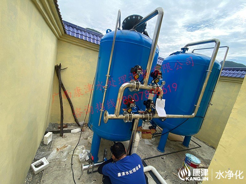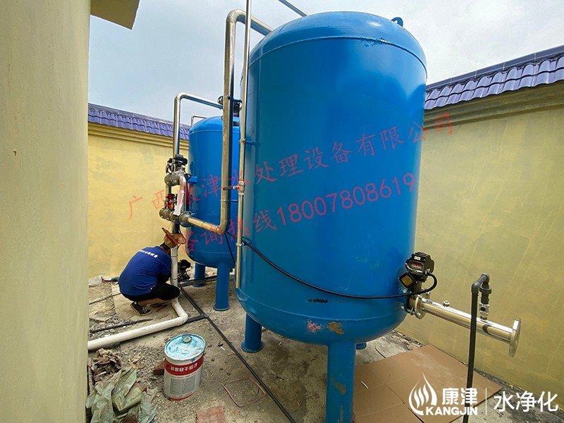 項目名稱:農村飲水安全鞏固提升工程 設備名稱:貴港市李村20噸壓力式一體化凈水設備 工藝流程:河水-絮凝加藥-沉淀過濾器-石英砂過濾器-二氧化氯消毒...