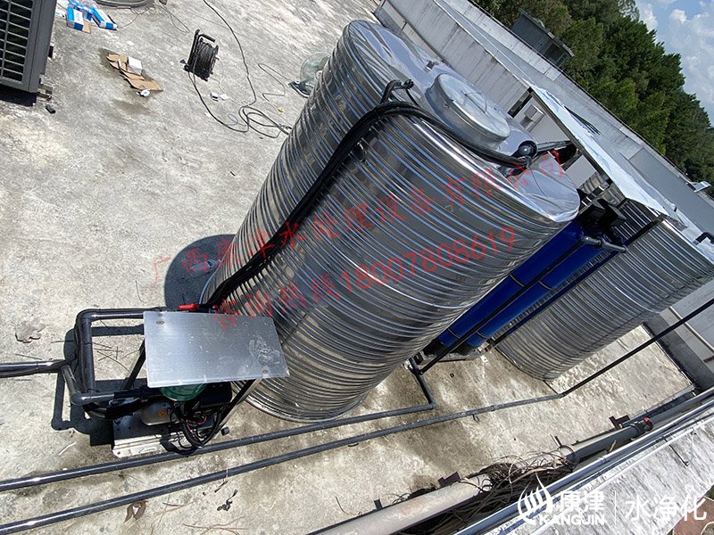 工藝流程:原水箱-石英砂過濾器-活性炭過濾器-精密過濾器-超濾設備-凈水箱-變頻供水-各用水點