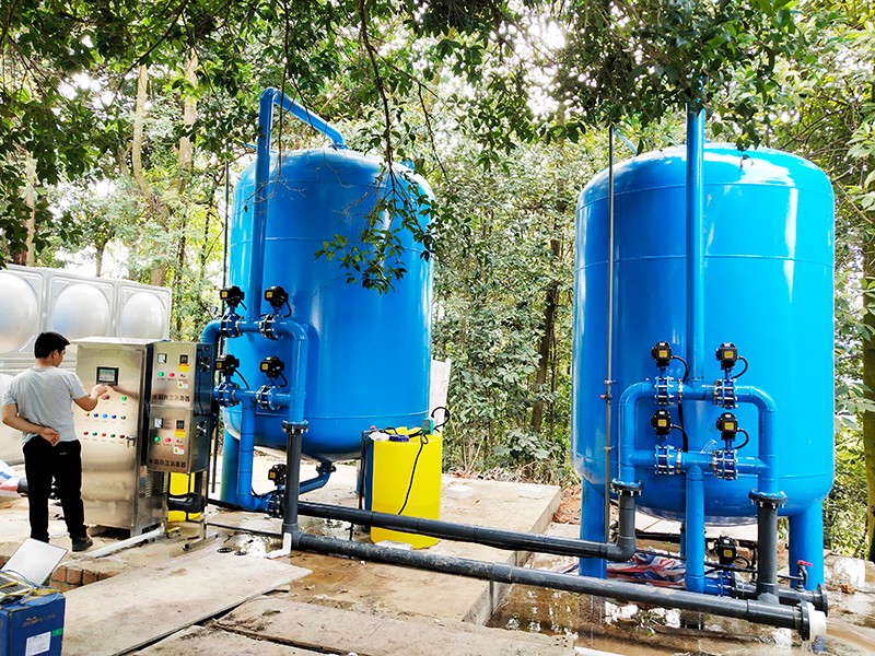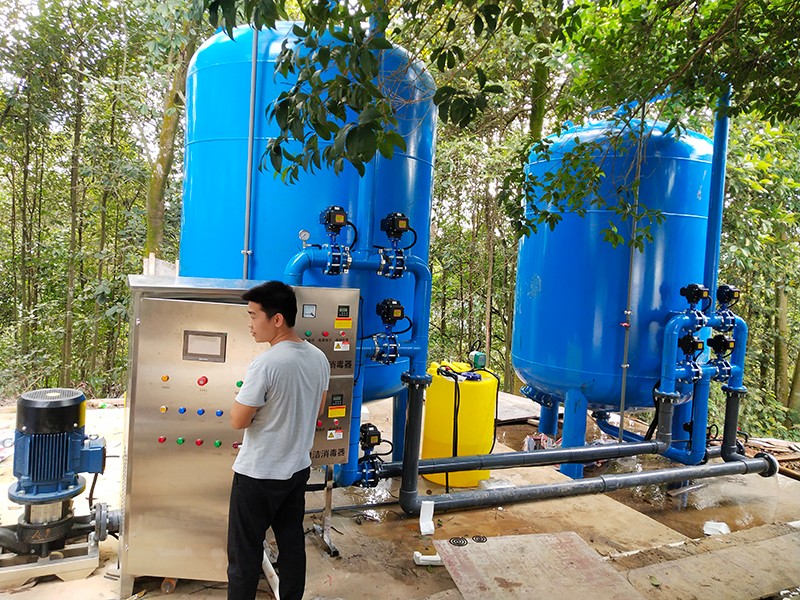本方案主要針對原水為河水、地下水、自來水等地區,水源通常比較渾濁,水面漂浮臟東西、樹葉、水藻等,尤其在暴雨季節,水中泥沙量增加,雜質多等情況。因此利用填料來降低水中 濁度,截留除去水中懸浮物、有機物膠質顆粒,是給水凈化的重要水處理設備??到蛩幚頌楦鶕嶋H用途情況制定以下解決方案。用水處理量每小時約50噸。