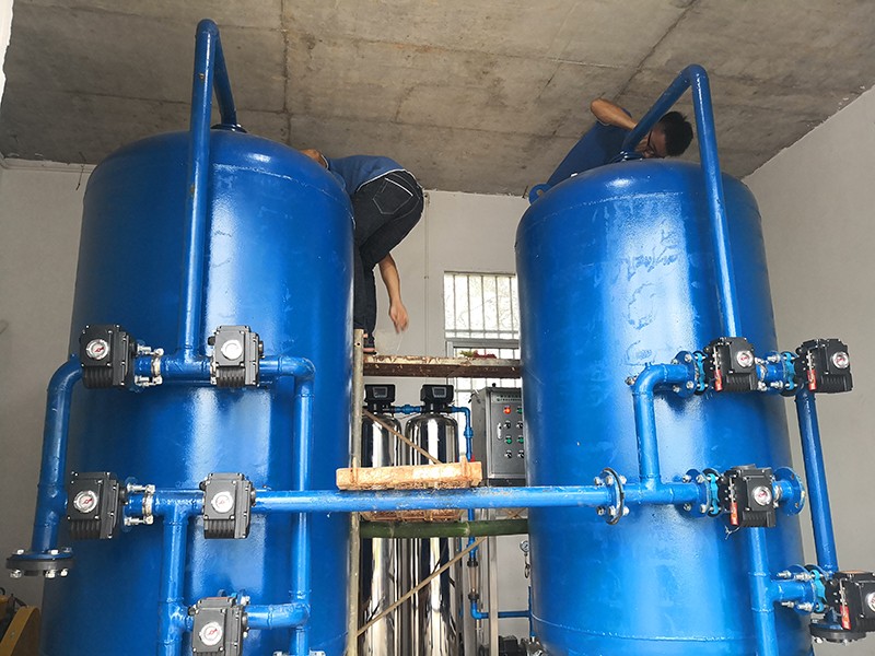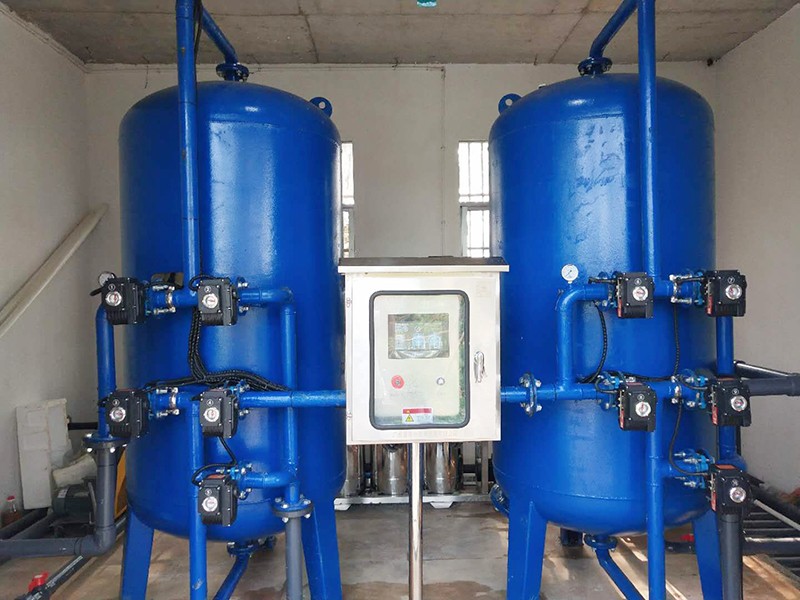 本方案主要針對原水為河水、地下水、自來水等地區,水源通常比較渾濁,水面漂浮臟東西、樹葉、水藻等,尤其在暴雨季節,水中泥沙量增加,雜質多等情況。因此利用填料來降低水中 濁度,截留除去水中懸浮物、有機物膠質顆粒,是給水凈化的重要水處理設備。康津水處理為根據實際用途情況制定以下解決方案。用水處理量每小時約10噸。
