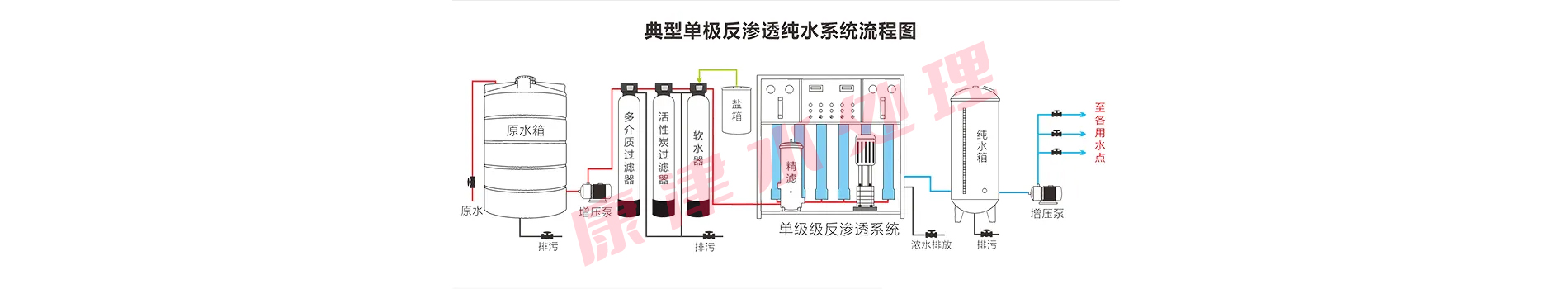 首先我們要知道反滲透水處理設分為一級反滲透和二級反滲透,它們都是以自來水作為原水,而且在經過處理之前原水是需要經過前置的預處理,在進入精密過濾器過濾后,才可以通過一級高壓泵加壓送至一級反滲透系統,在一級反滲透產出的水再由二級高壓泵度加壓送至二級反滲透系統,這樣一套流程才是反滲透設備的工作過程